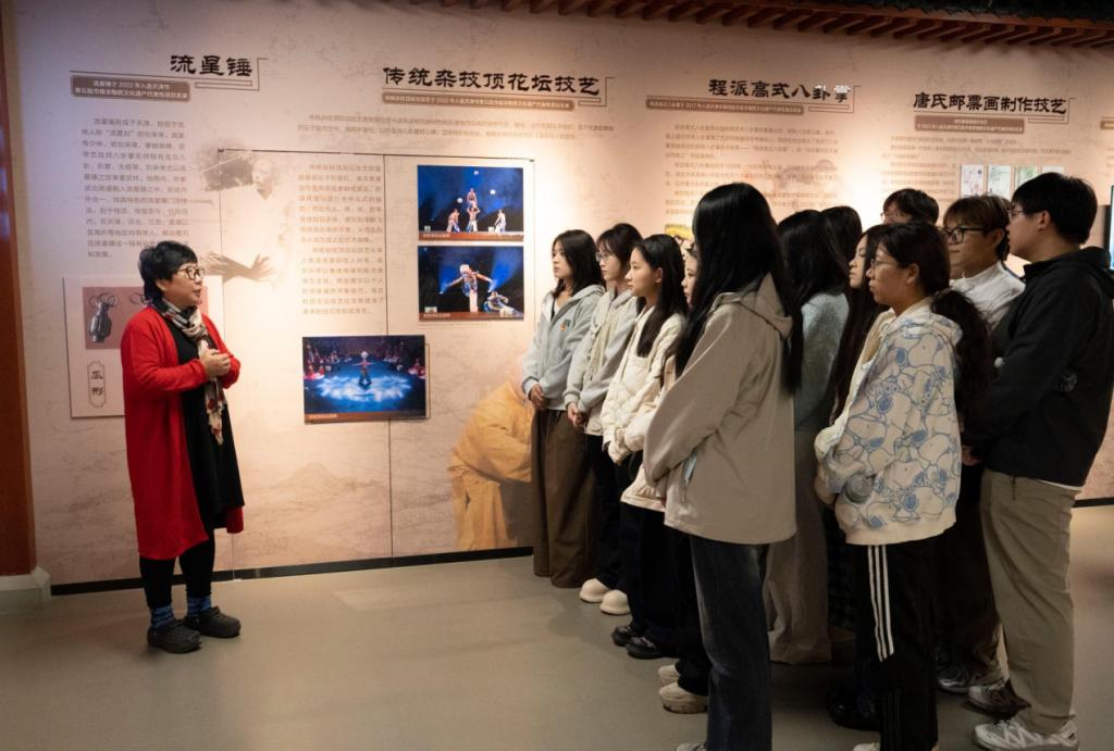 在河西区文化馆非遗部讲解员的带领下,师生一行参观西岸非遗体验馆。从津门法鼓到天津面塑,讲解员为师生逐一介绍近百种非遗项目的文化背景和人文内涵。馆内琳琅满目的非遗展品让师生频频驻足、沉浸其中,这场非遗之旅为师生们打开了一扇感知津派文化的独特窗口。